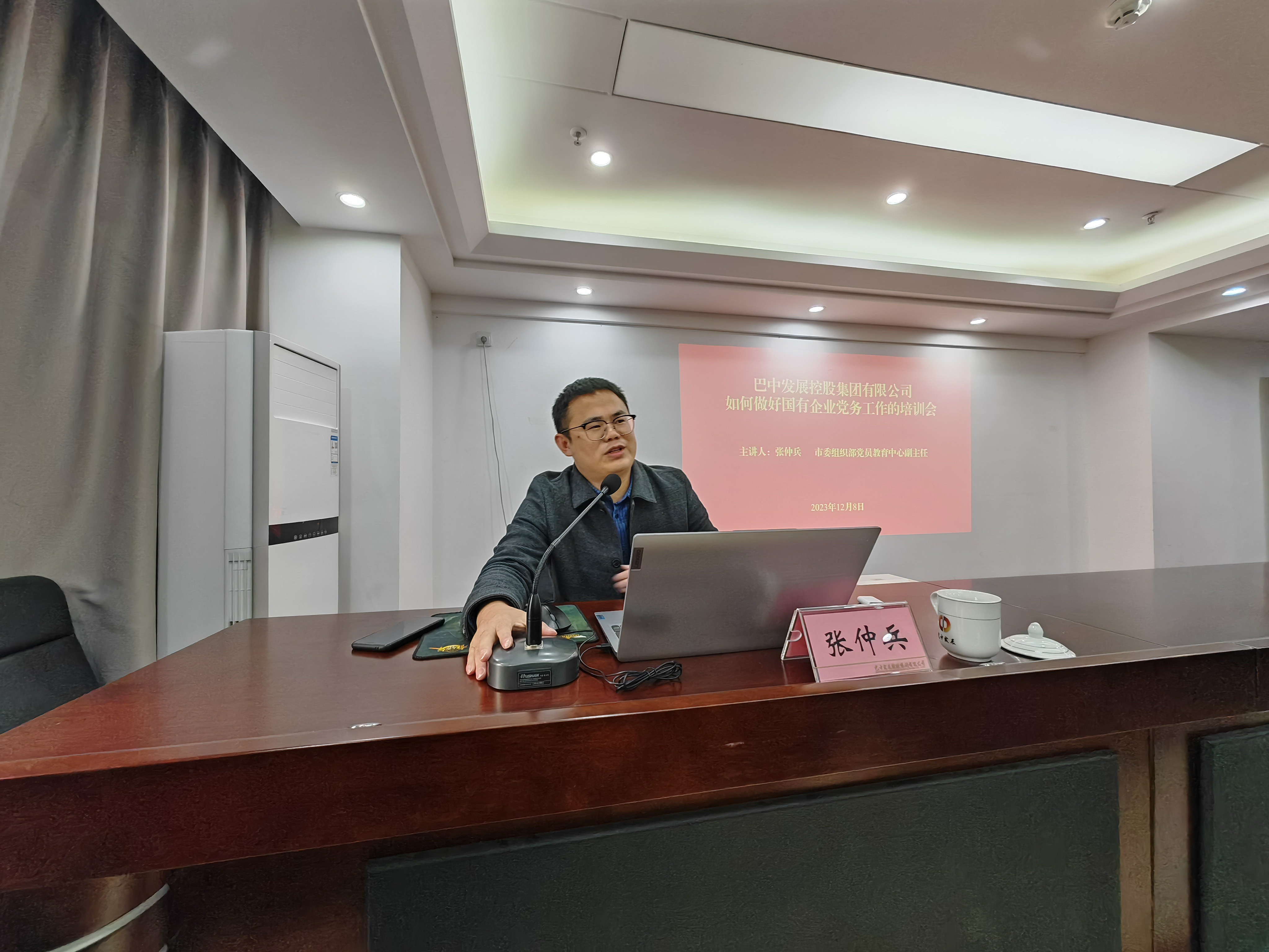 為提升基層黨組織治理能力,提高黨員干部的思想素質(zhì)和業(yè)務(wù)技能,12月8日,巴中發(fā)展集團舉辦“發(fā)展大講堂”第八期——如何做好國有企業(yè)黨務(wù)工作,特邀市委組織部黨員教育中心副主任張仲兵進行授課。