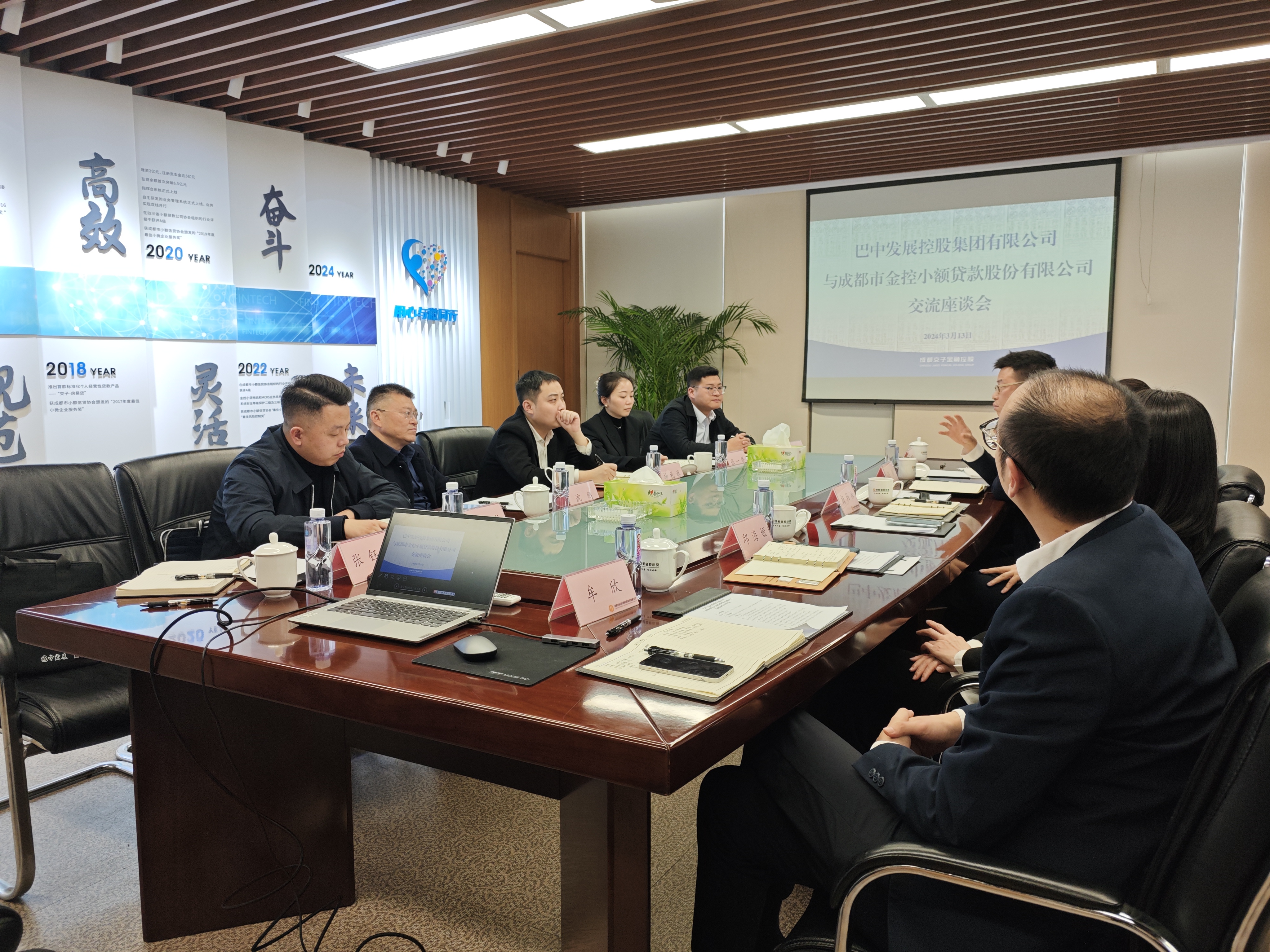 在與成都金控小額貸款公司、成都錦融小額貸款公司座談交流中,沈鵬首先介紹了巴中發(fā)展集團改革發(fā)展以及金融業(yè)務板塊布局相關情況,雙方圍繞小額貸款業(yè)務開展、信息系統(tǒng)搭建、金融產品創(chuàng)新、風險機制建立、專業(yè)人才隊伍建設等方面進行了深入交流。