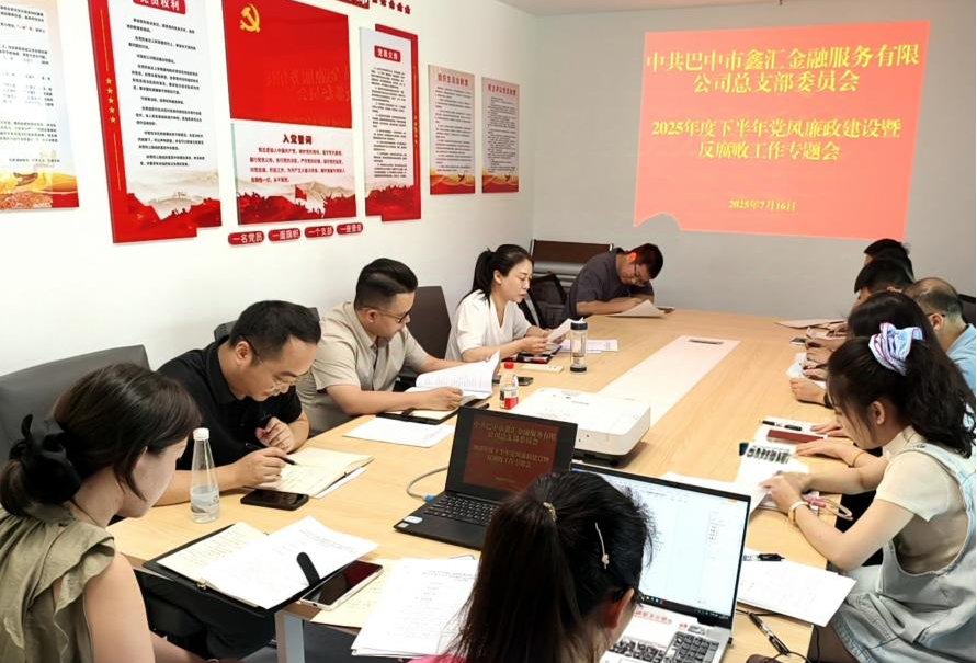 為深入貫徹落實全面從嚴(yán)治黨要求,總結(jié)部署黨風(fēng)廉政建設(shè)工作,為公司高質(zhì)量發(fā)展提供堅強(qiáng)紀(jì)律保障,7月16日上午,中共巴中市鑫匯金融服務(wù)有限公司總支部委員會召開2025年度下半年黨風(fēng)廉政建設(shè)暨反腐敗工作專題會。公司黨總支書記、董事、總經(jīng)理陳家龍主持會議并講話,全體職工參加會議。