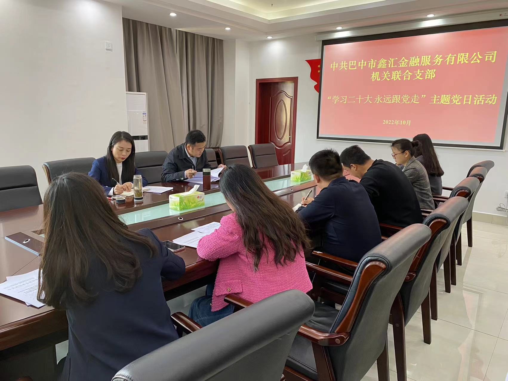 為深入學(xué)習(xí)宣傳貫徹黨的二十大精神,10月31日,中共巴中市鑫匯金融服務(wù)有限公司機關(guān)聯(lián)合支部開展“學(xué)習(xí)黨的二十大 永遠跟黨走”主題活動,機關(guān)聯(lián)合支部全體黨員、公司全體職工參加。