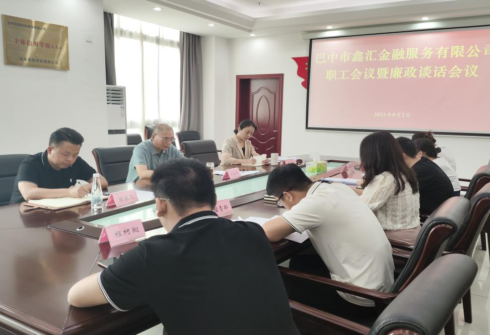 8月2日上午,巴中市鑫匯金融服務(wù)有限公司召開(kāi)職工會(huì)議暨廉政談話(huà)會(huì)議,集團(tuán)公司黨委委員、副總經(jīng)理劉仕勇主持會(huì)議并講話(huà),公司全體職工參加。