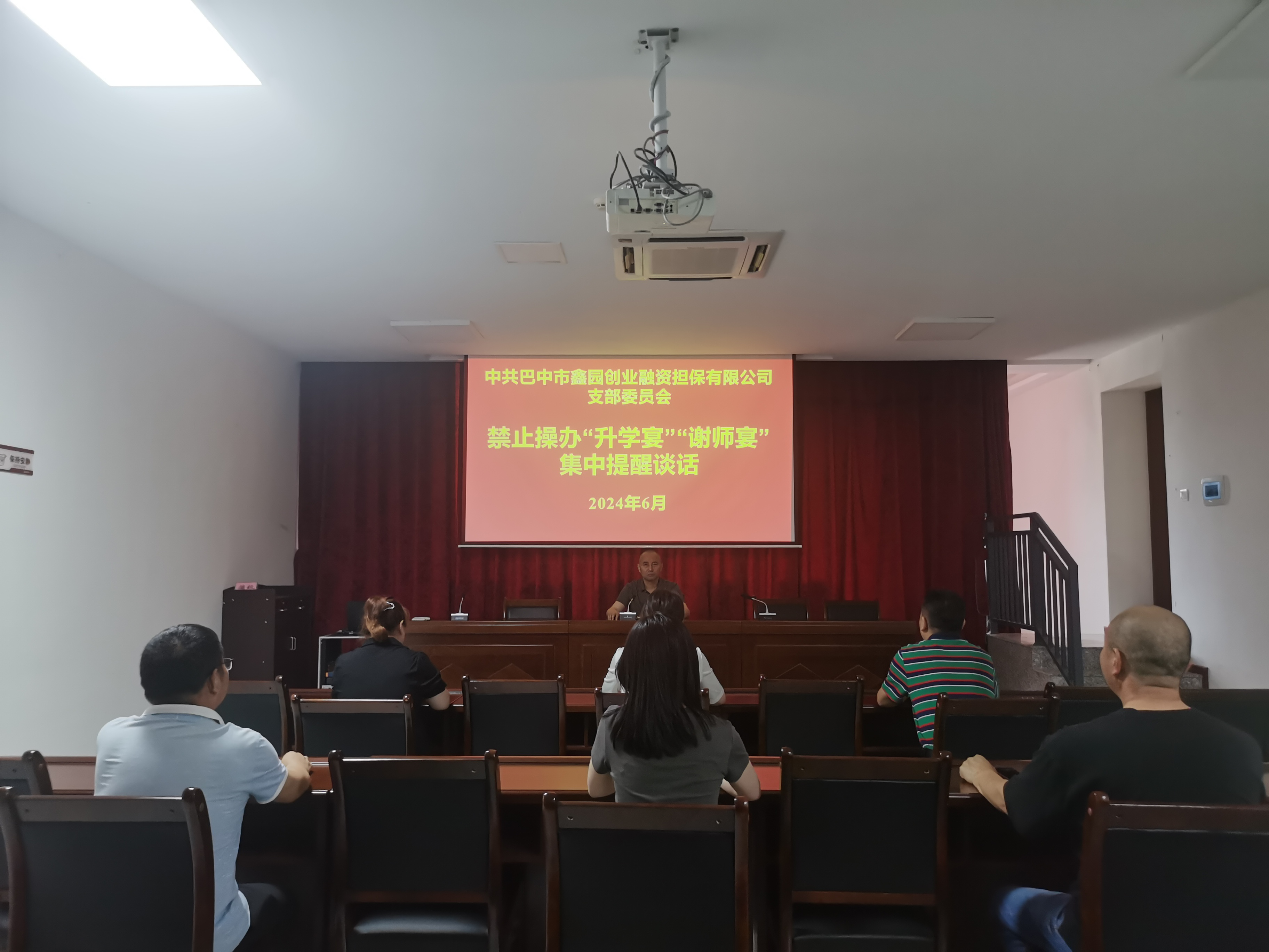 為認真貫徹落實中央八項規(guī)定、省委十項規(guī)定和市委九項規(guī)定精神,扎實開展好黨紀學(xué)習(xí)教育,狠剎違規(guī)操辦酒席不正之風(fēng),6月20日,市鑫園創(chuàng)業(yè)擔(dān)保公司黨支部書記、董事長吳德映對今年有子女畢業(yè)升學(xué)的職工開展了集中提醒談話。
